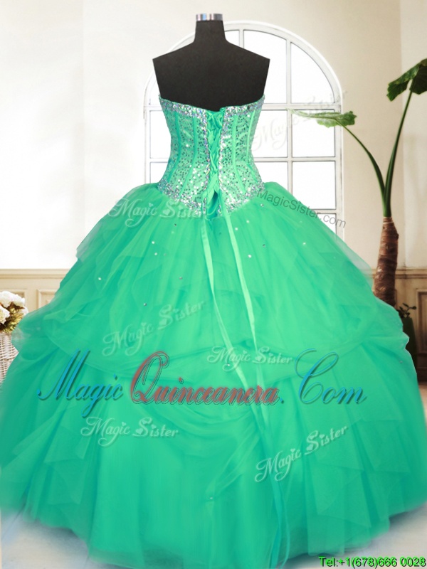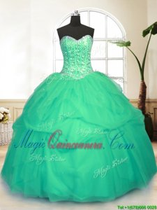 Aqua Blue Ball Gowns Sequins and Pick Ups Sweet 16 Dress Lace Up Tulle Sleeveless Floor Length