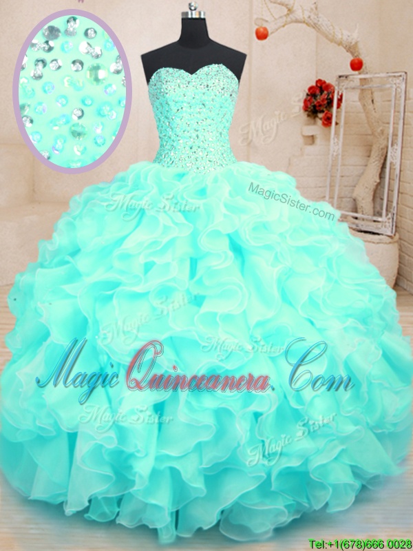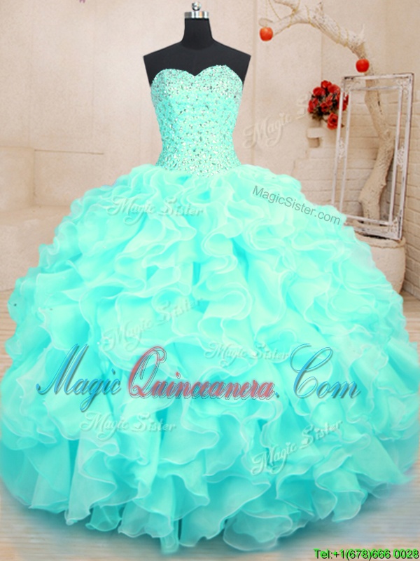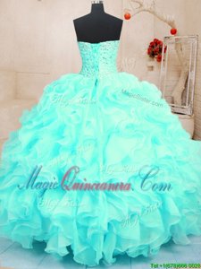 Adorable Floor Length Ball Gowns Sleeveless Aqua Blue 15 Quinceanera Dress Lace Up