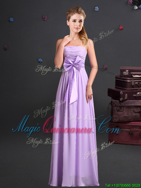Adorable Floor Length Lavender Quinceanera Court of Honor Dress Strapless Sleeveless Zipper