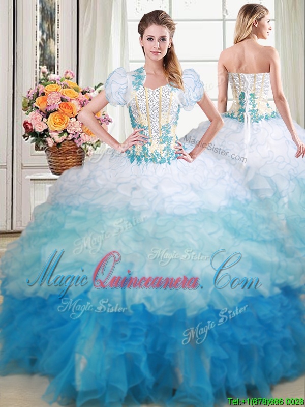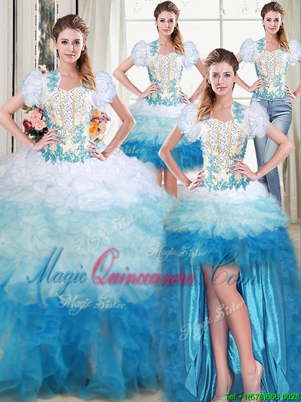 Four Piece Multi-color Sweetheart Lace Up Appliques and Ruffles Vestidos de Quinceanera Sleeveless