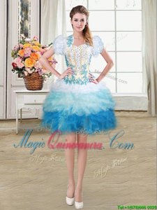 Adorable Four Piece Sweetheart Sleeveless Quinceanera Dresses Floor Length Beading and Appliques and Ruffles Multi-color Organza