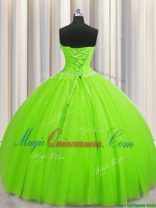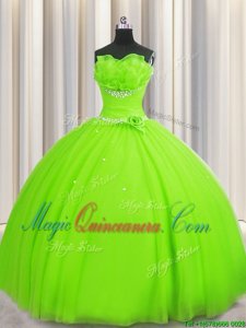 Adorable Handcrafted Flower Strapless Lace Up Beading and Sequins and Hand Made Flower Quinceanera Dress Sleeveless