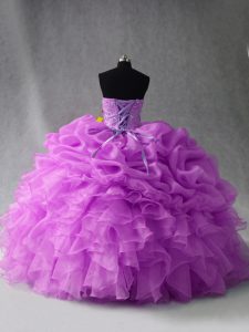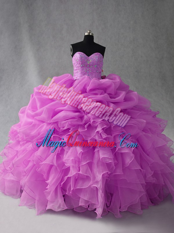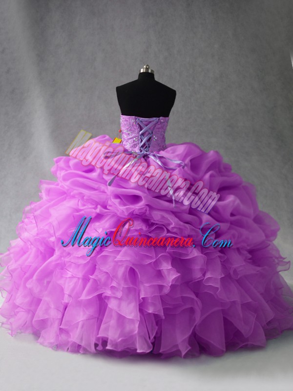 Adorable Lilac Lace Up Sweetheart Beading and Ruffles and Pick Ups Vestidos de Quinceanera Organza Sleeveless