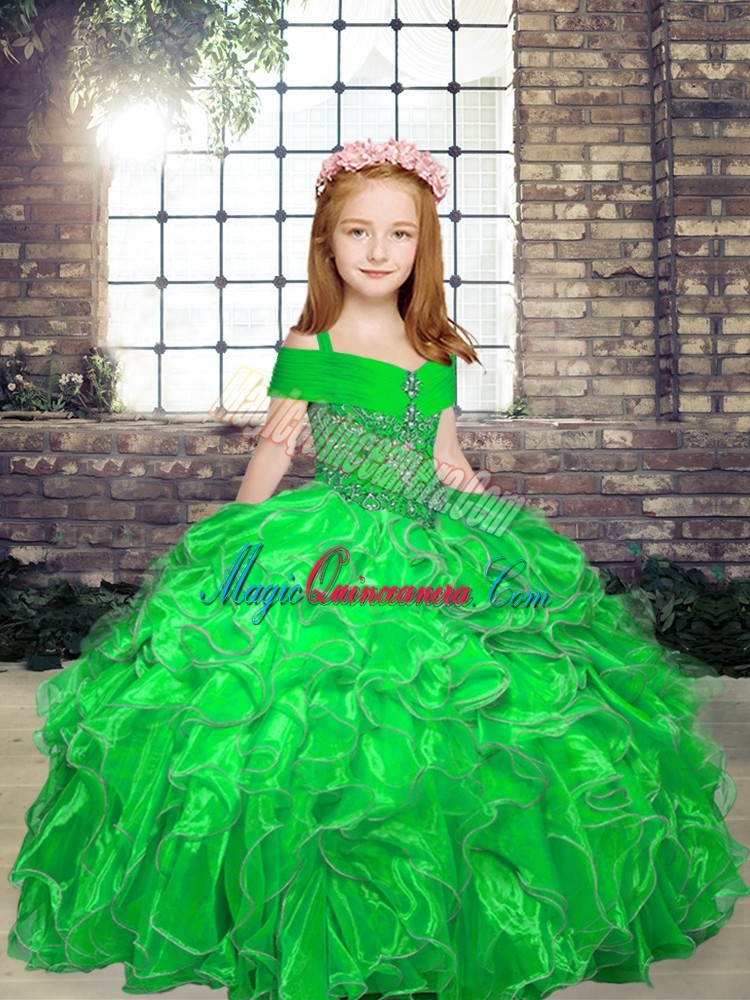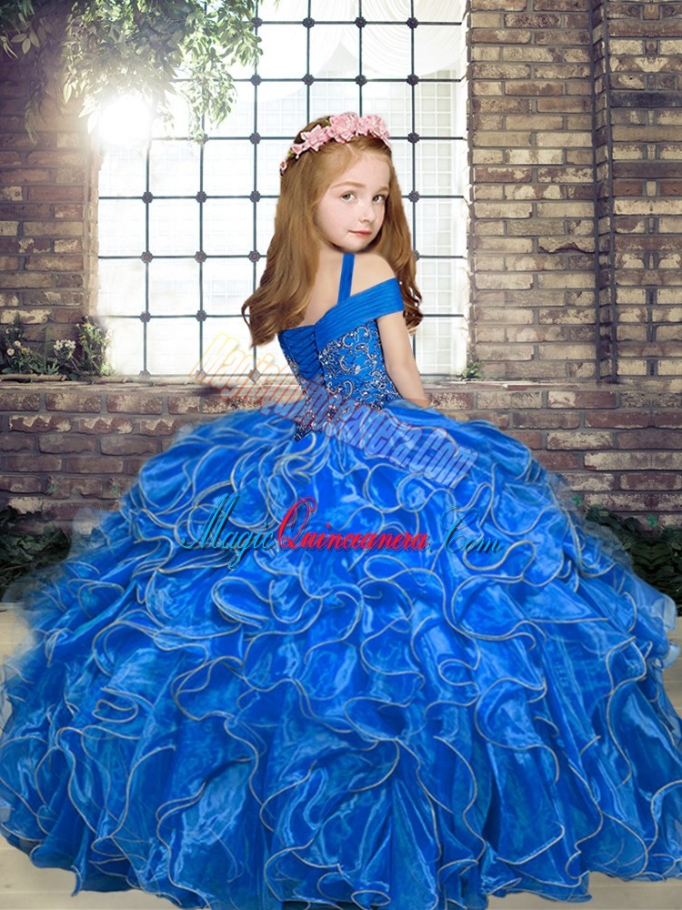 Adorable Straps Neckline Beading and Ruffles Pageant Dress for Teens Sleeveless Lace Up