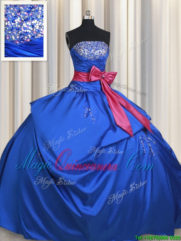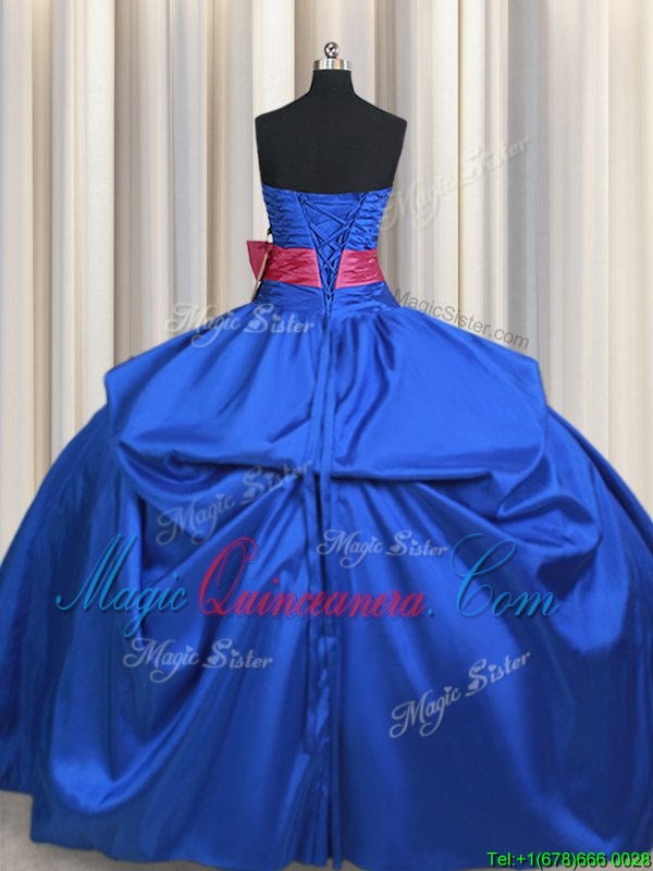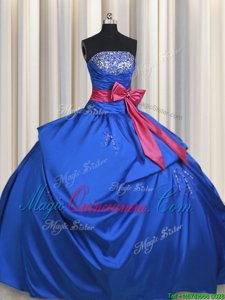 Adorable Taffeta Strapless Sleeveless Lace Up Beading and Bowknot Sweet 16 Dresses in Blue
