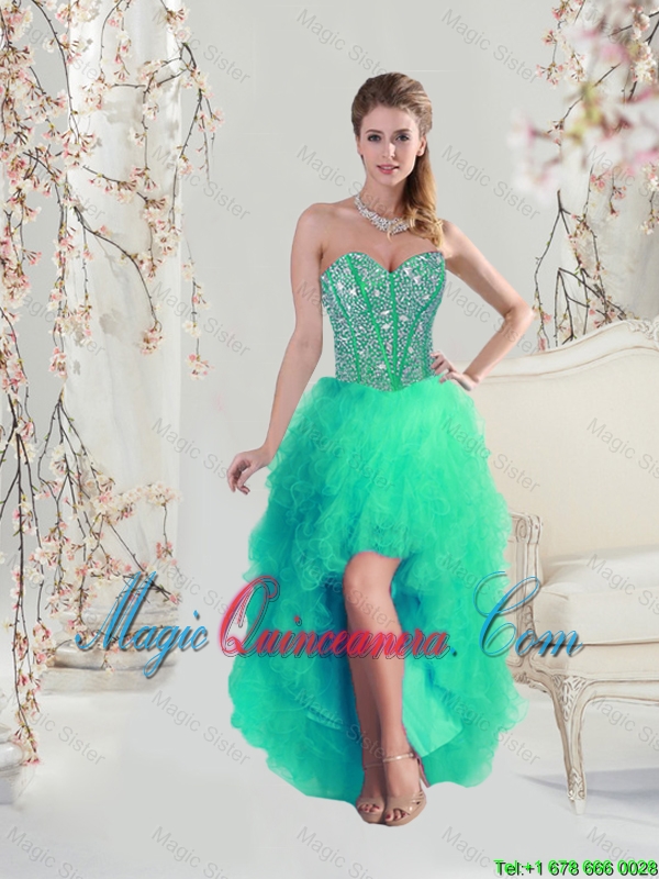 Afforable High Low Beaded and Ruffles Apple Green Prom Dresses for 2016