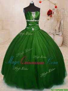Affordable Green Ball Gowns Tulle Strapless Sleeveless Beading Floor Length Lace Up Sweet 16 Dress