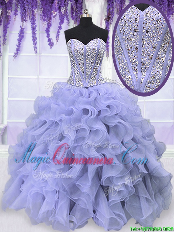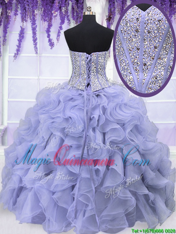 Affordable Lavender Ball Gowns Organza Sweetheart Sleeveless Beading and Ruffles Floor Length Lace Up Quinceanera Dresses - Magic Quinceanera