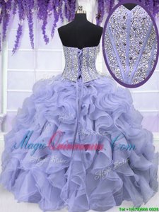 Affordable Lavender Ball Gowns Organza Sweetheart Sleeveless Beading and Ruffles Floor Length Lace Up Quinceanera Dresses