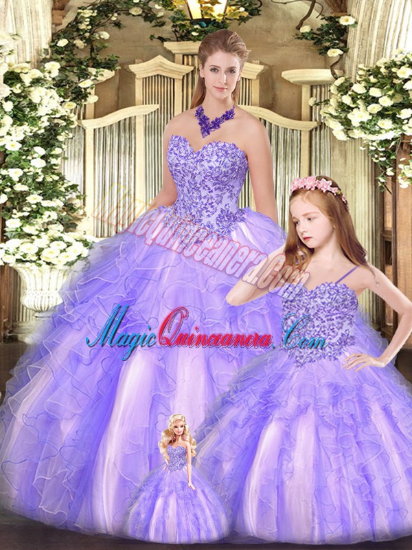 Affordable Lavender Ball Gowns Organza Sweetheart Sleeveless Beading and Ruffles Floor Length Lace Up Vestidos de Quinceanera - Magic Quinceanera