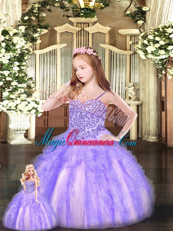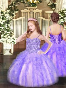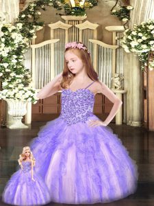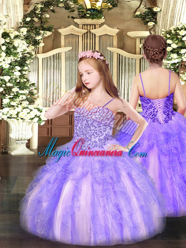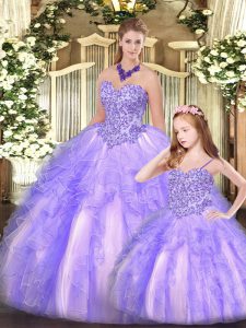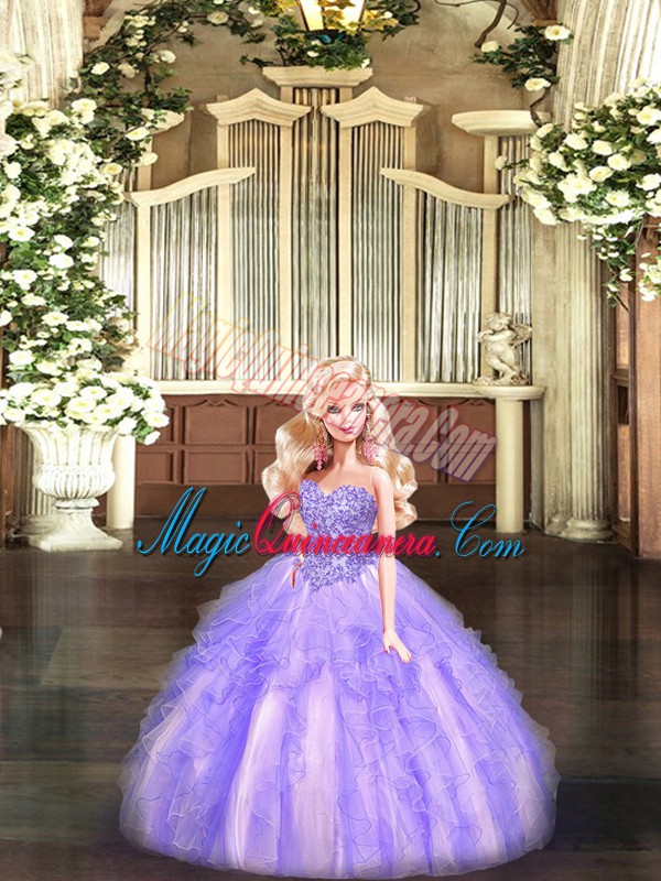 Affordable Lavender Ball Gowns Organza Sweetheart Sleeveless Beading and Ruffles Floor Length Lace Up Vestidos de Quinceanera