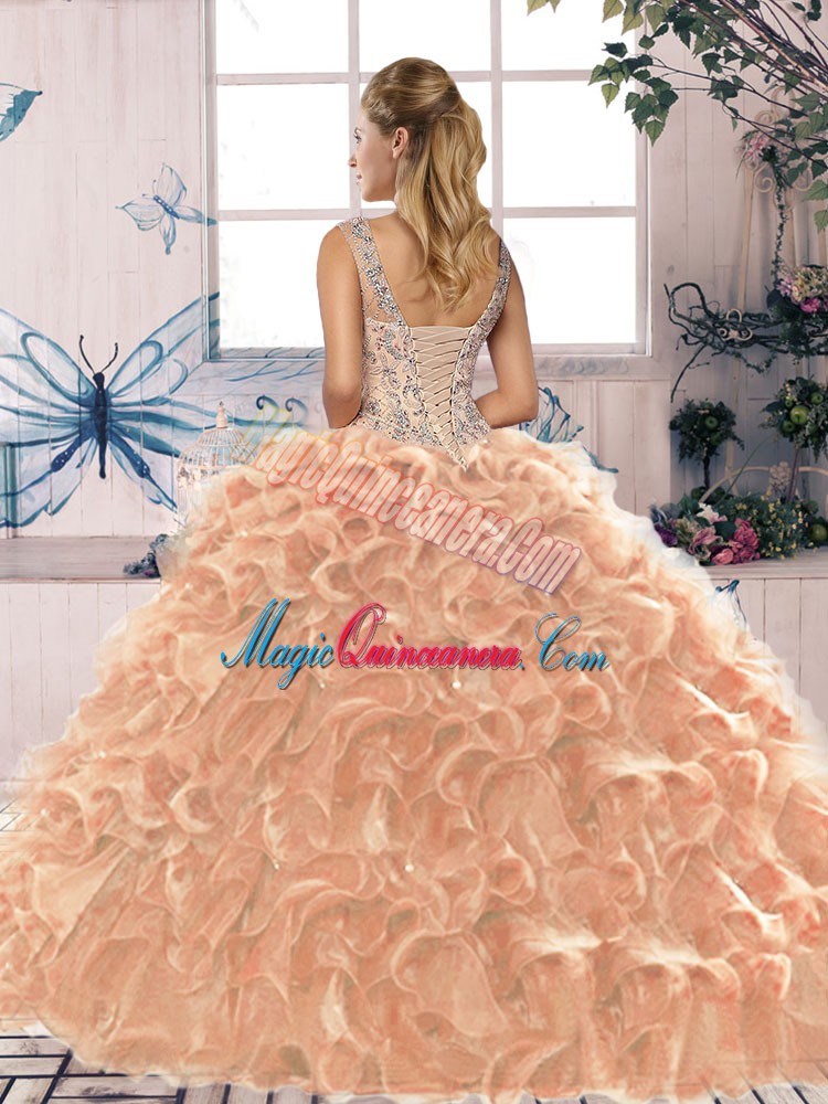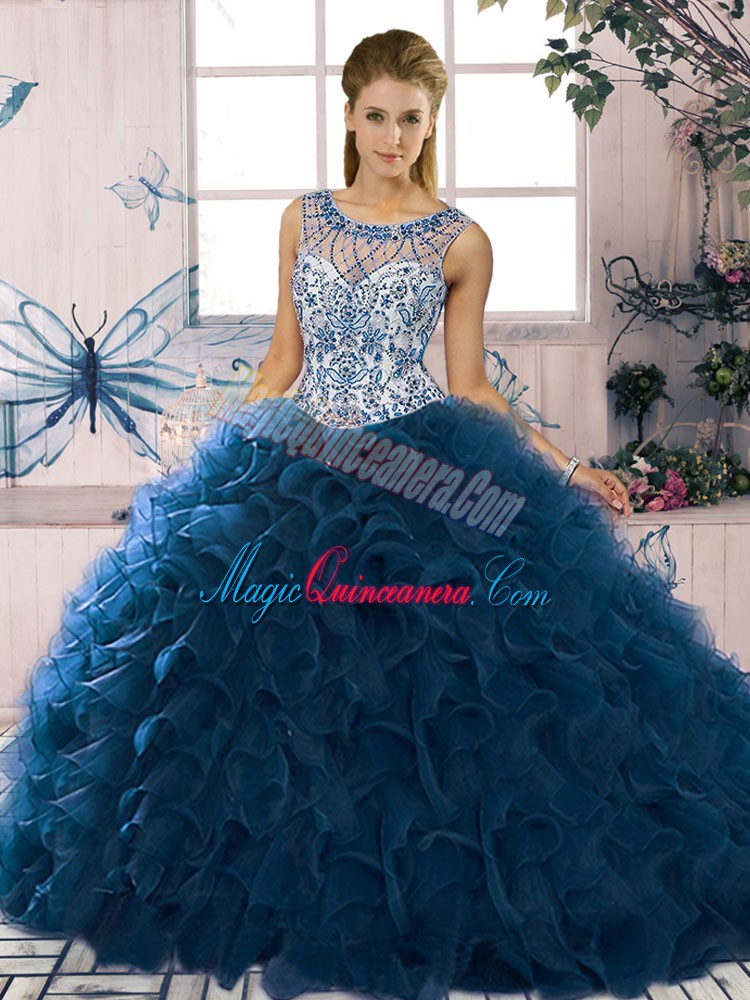Affordable Navy Blue Sweet 16 Dress Military Ball and Sweet 16 and Quinceanera with Beading and Ruffles Scoop Sleeveless Lace Up