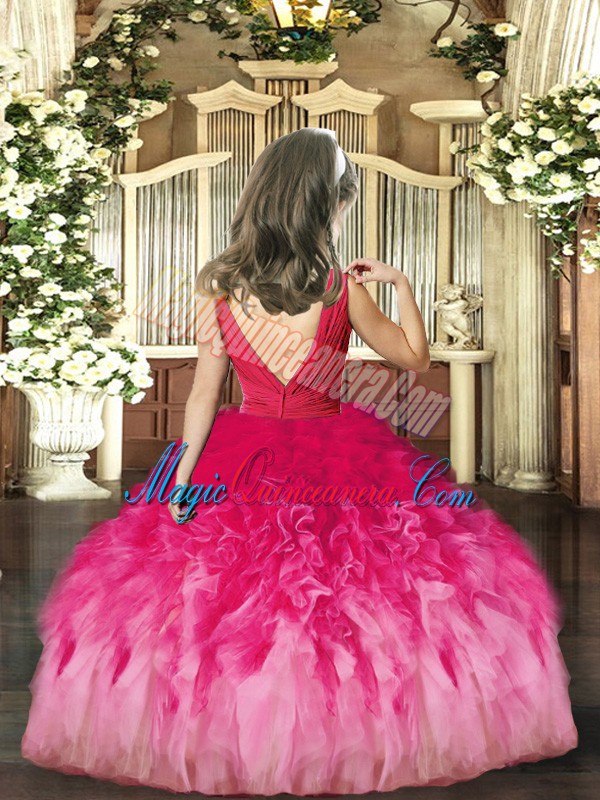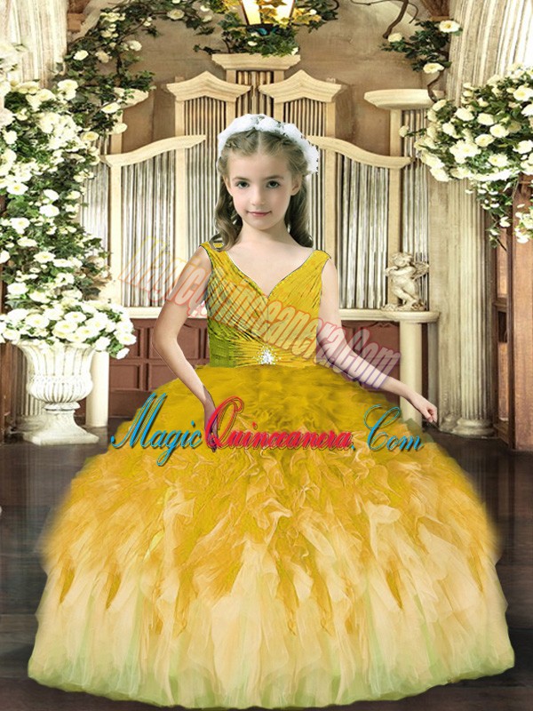 , Affordable Sleeveless Beading and Ruffles Backless Pageant Dress for Teens