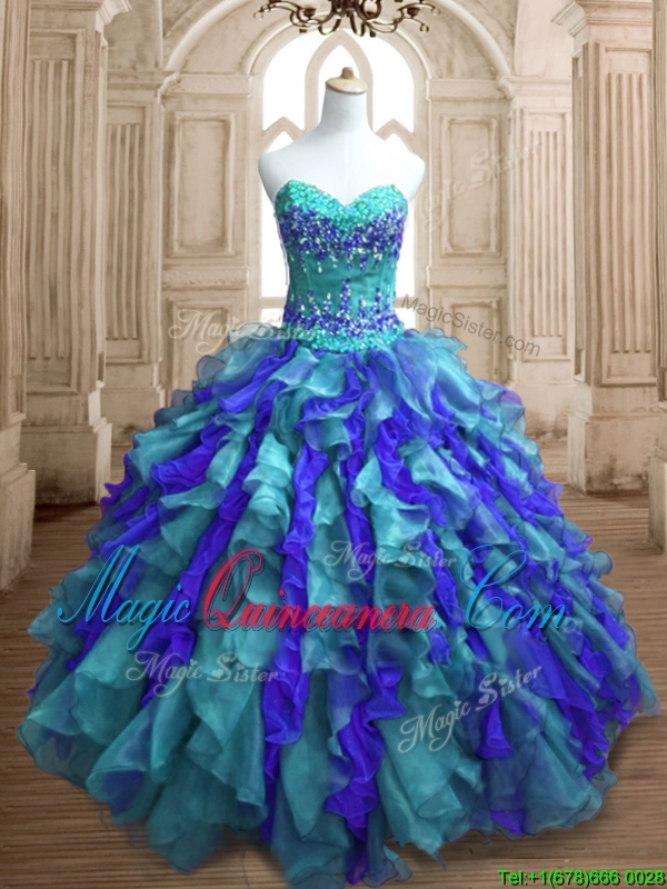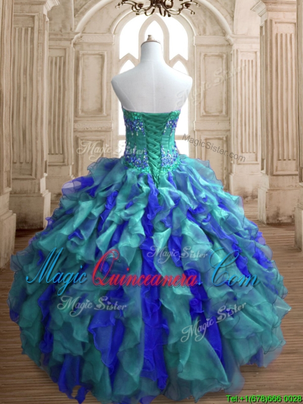 Affordable Teal and Blue Sweet 16 Dress with Appliques and Ruffles