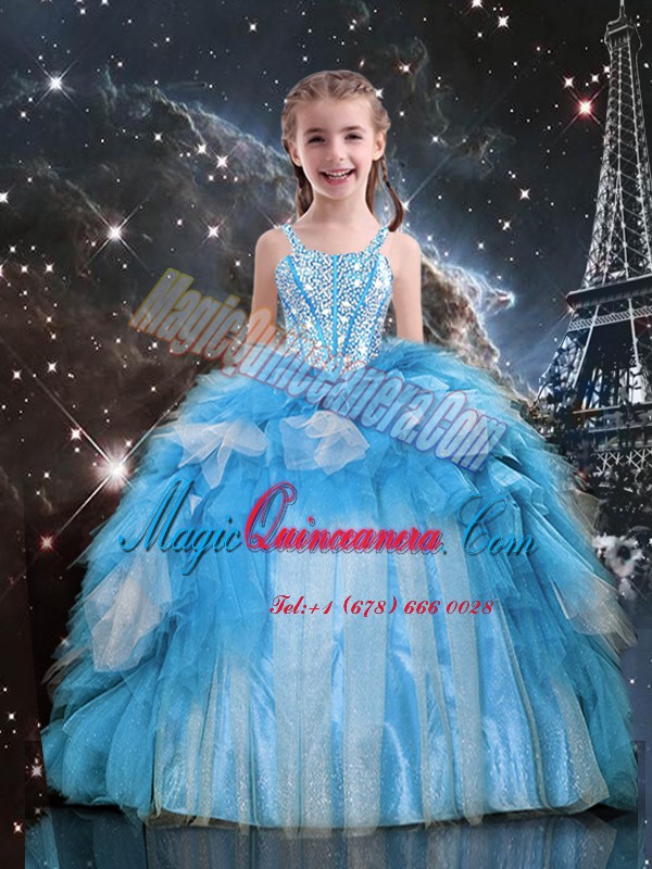 Amazing Baby Blue Sleeveless Organza Lace Up Pageant Dress for Womens for Party and Wedding Party