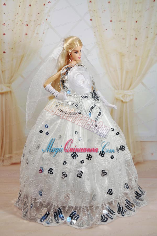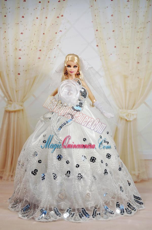 Amazing Ball Gown Dress For Noble Barbie With Sequin and Hand Made Flowers