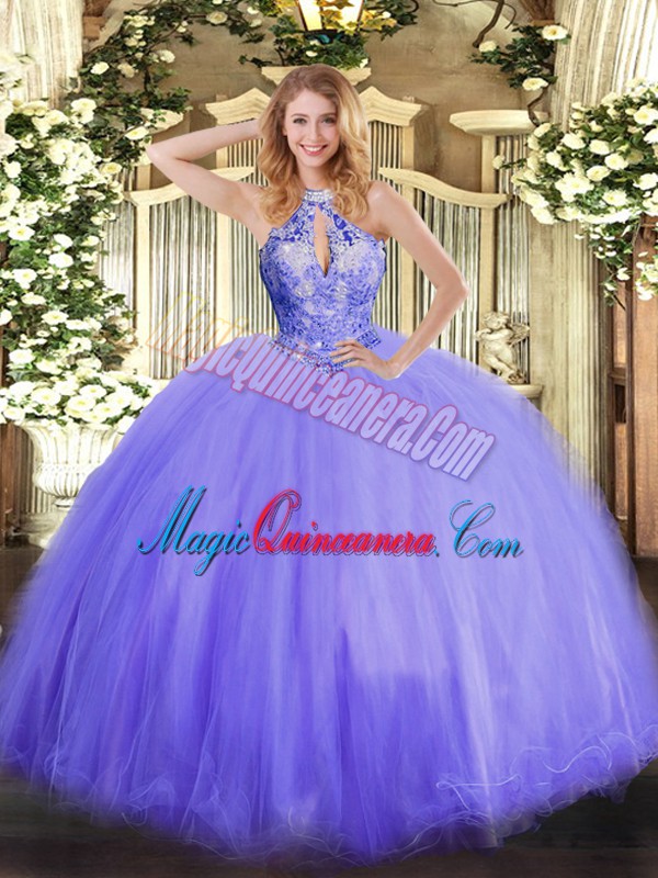 , Amazing Beading Sweet 16 Dress Lavender Lace Up Sleeveless Floor Length