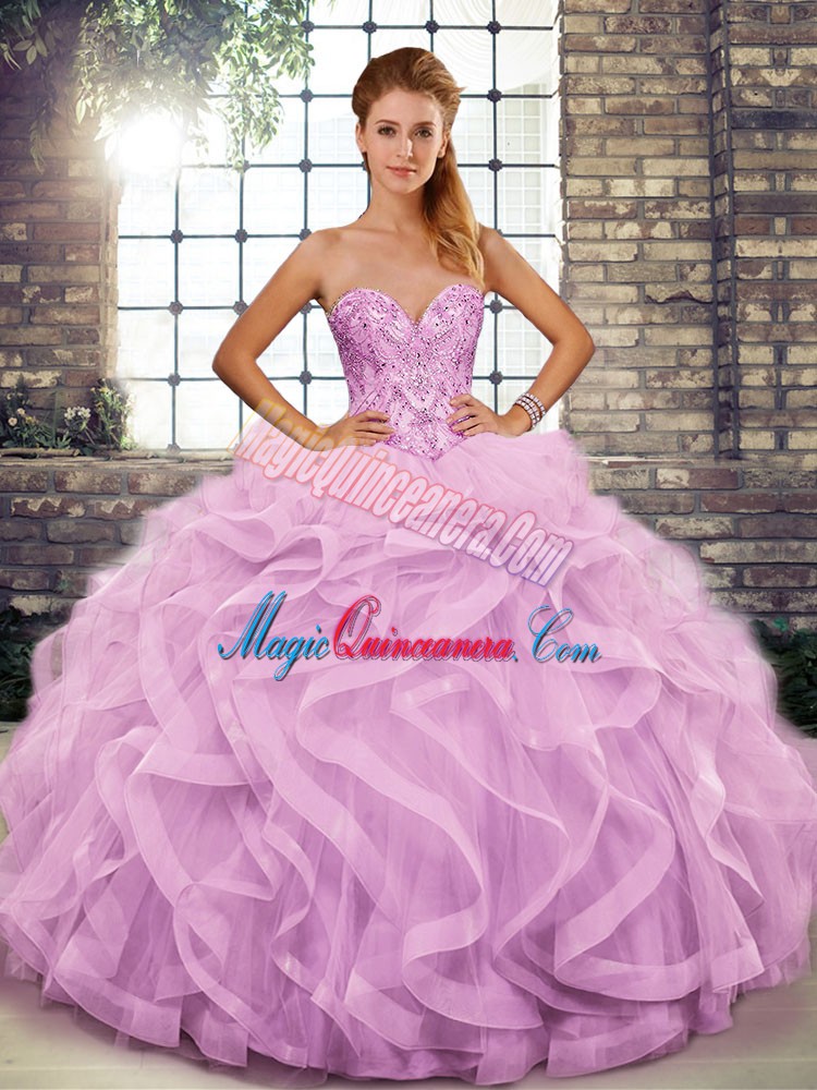 , Amazing Lilac Sleeveless Beading and Ruffles Floor Length Quinceanera Dress