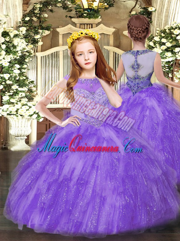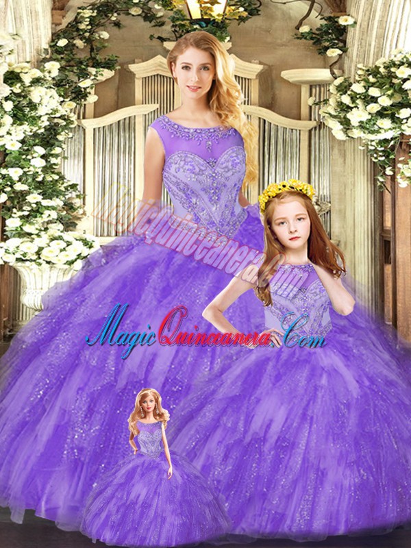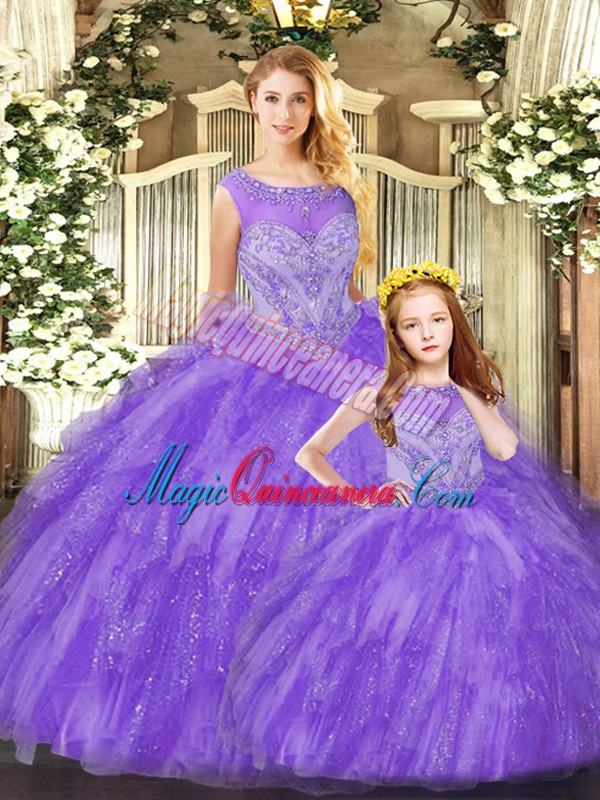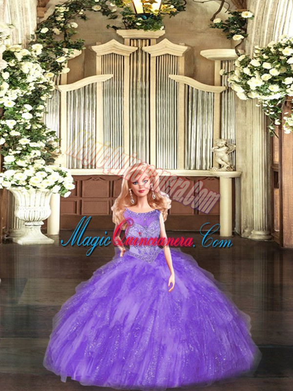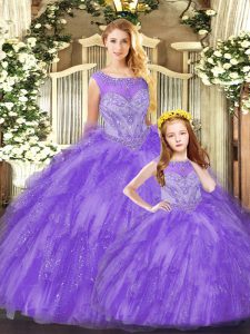 Amazing Organza Scoop Sleeveless Lace Up Beading and Ruffles 15 Quinceanera Dress in Eggplant Purple