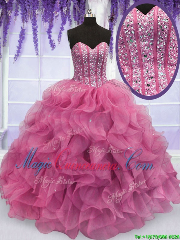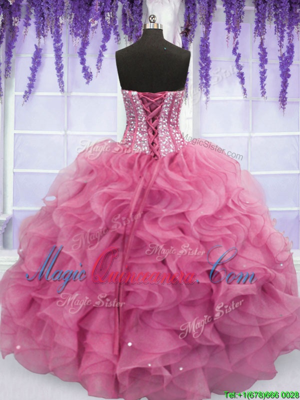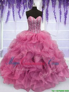 Amazing Organza Sleeveless Floor Length Sweet 16 Quinceanera Dress and Beading and Ruffles