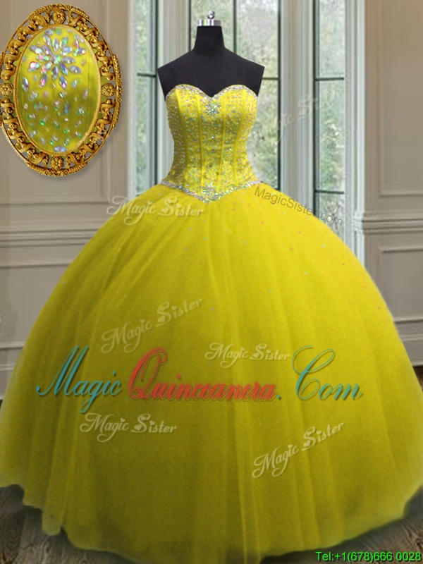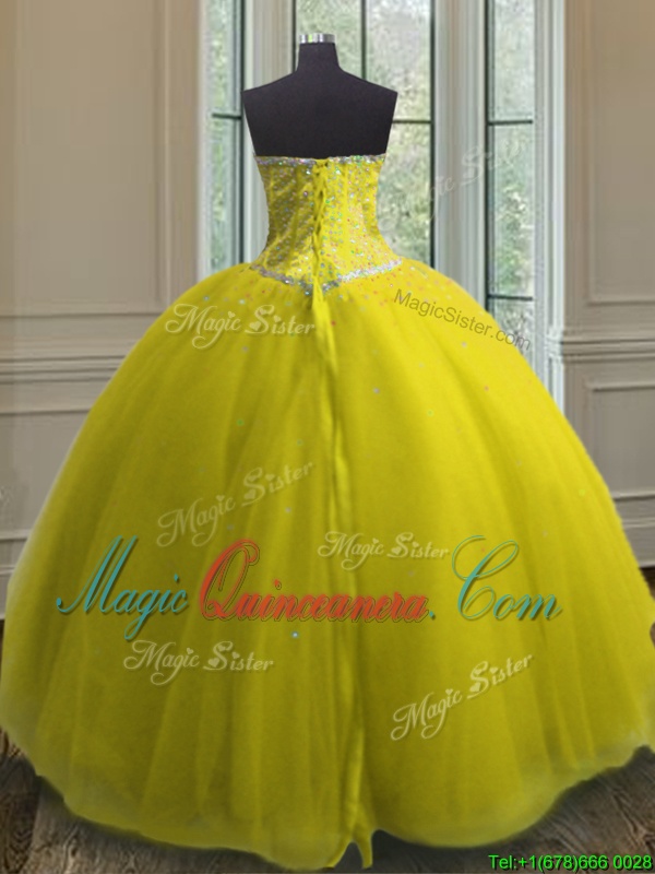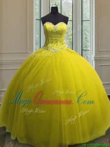 Amazing Yellow Lace Up Quinceanera Dresses Beading and Sequins Sleeveless Floor Length