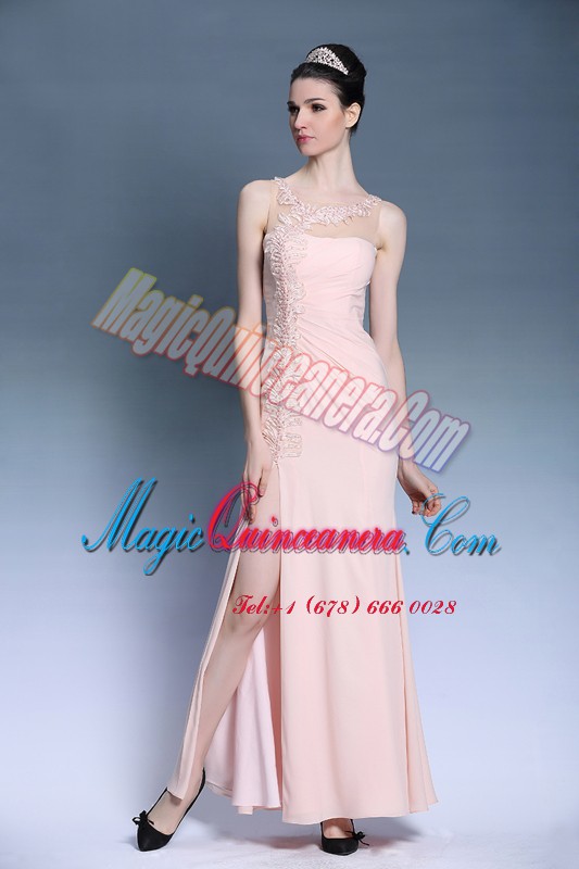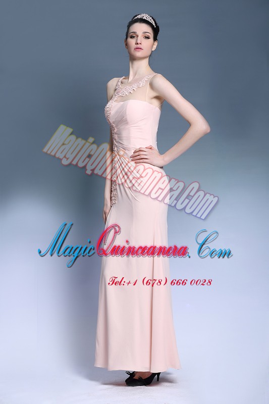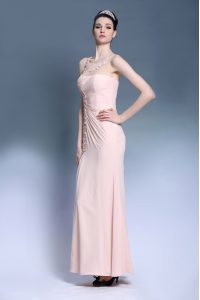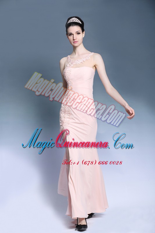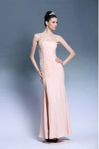 , Ankle Length Column/Sheath Sleeveless Baby Pink Dress for Prom Side Zipper