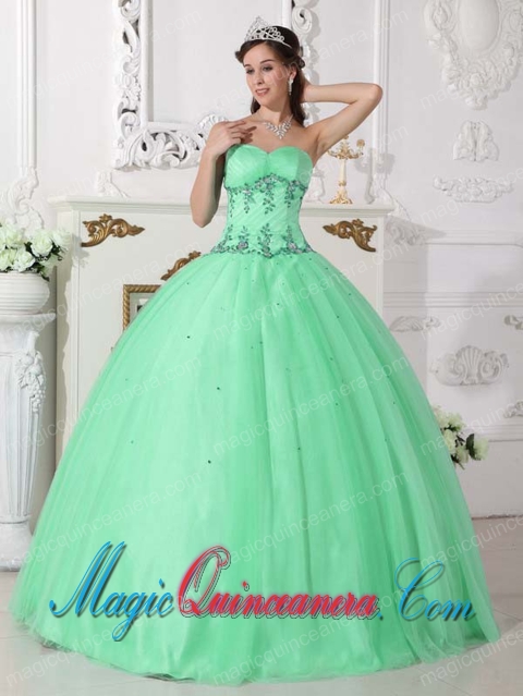 sweet heart sweet 16 dresses in grambling, Apple Green Ball Gown Sweetheart Floor-length Tulle and Taffeta Beading Spring Quinceanera Dress
