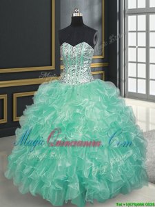 Apple Green Lace Up 15 Quinceanera Dress Beading and Ruffles Sleeveless Floor Length