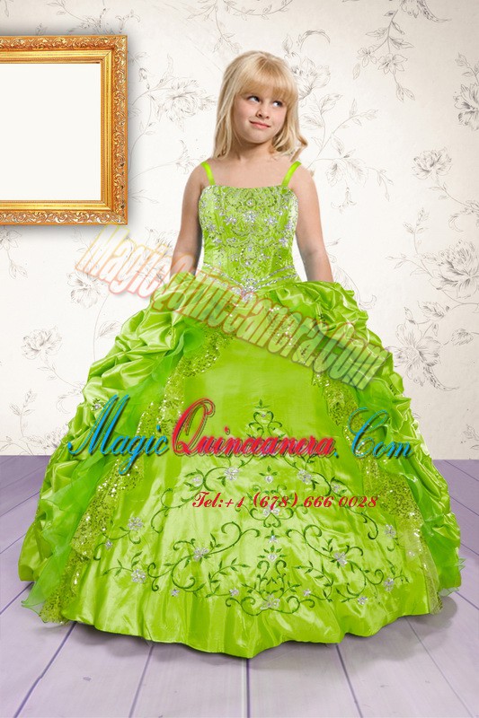 Apple Green Lace Up Pageant Dress for Teens Beading and Appliques and Pick Ups Sleeveless Floor Length