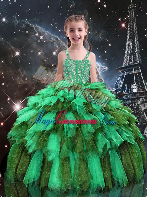 Apple Green Lace Up Straps Beading and Ruffles Pageant Dress for Teens Tulle Sleeveless