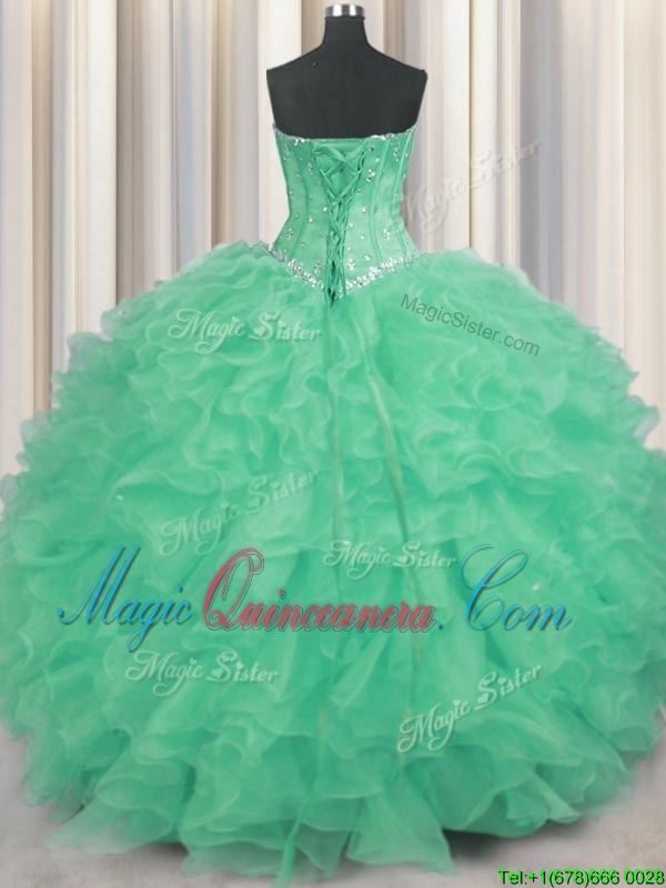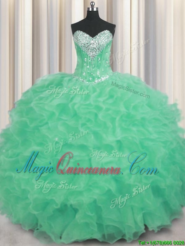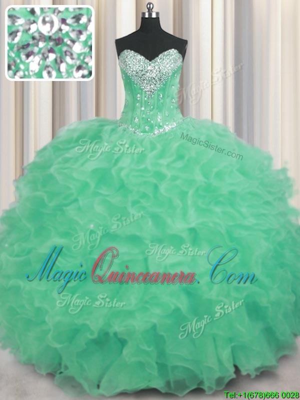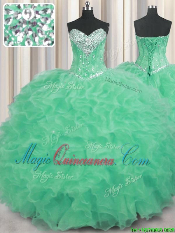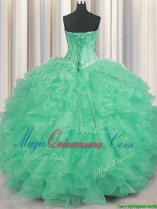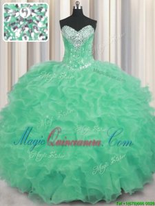 Apple Green Lace Up Sweetheart Beading and Ruffles Quinceanera Dresses Organza Sleeveless
