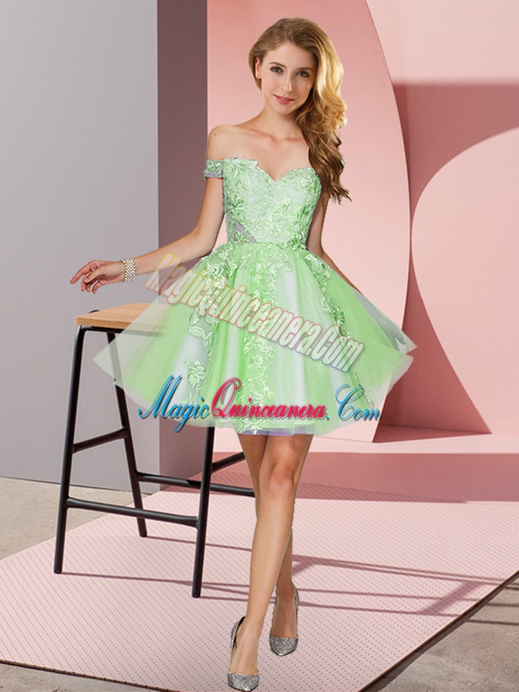 Apple Green Off The Shoulder Zipper Appliques Vestidos de Damas Sleeveless