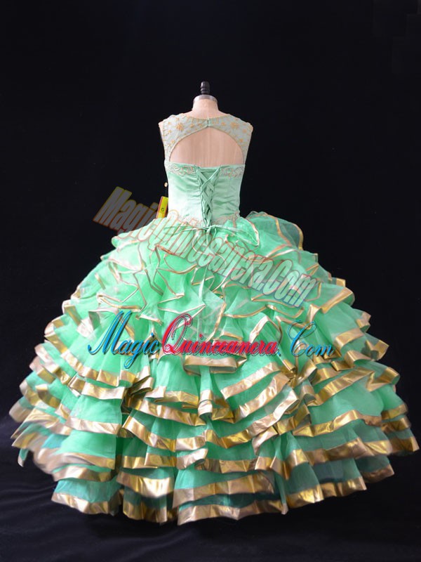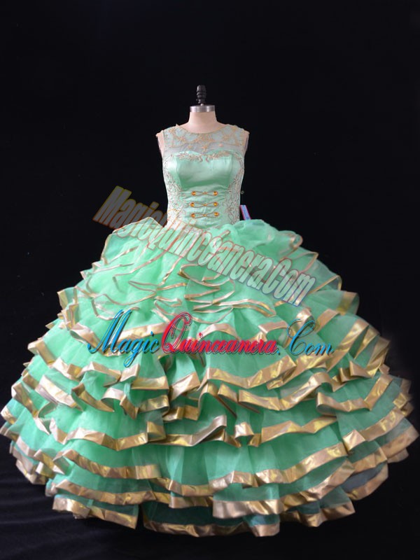 Apple Green Quince Ball Gowns Sweet 16 and Quinceanera with Ruffles Sweetheart Sleeveless Lace Up