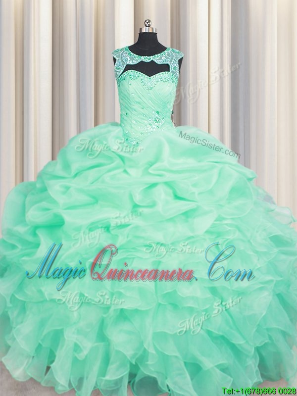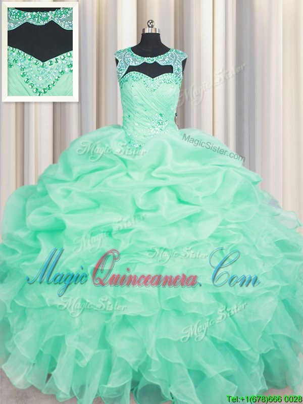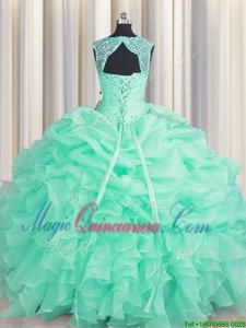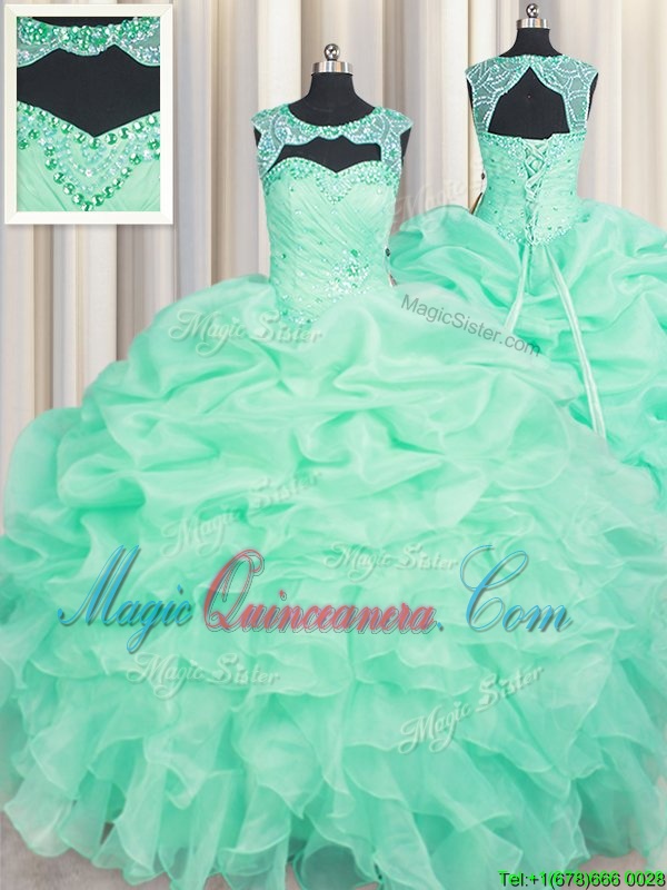 Apple Green Scoop Neckline Beading and Ruffles and Pick Ups Quince Ball Gowns Sleeveless Lace Up