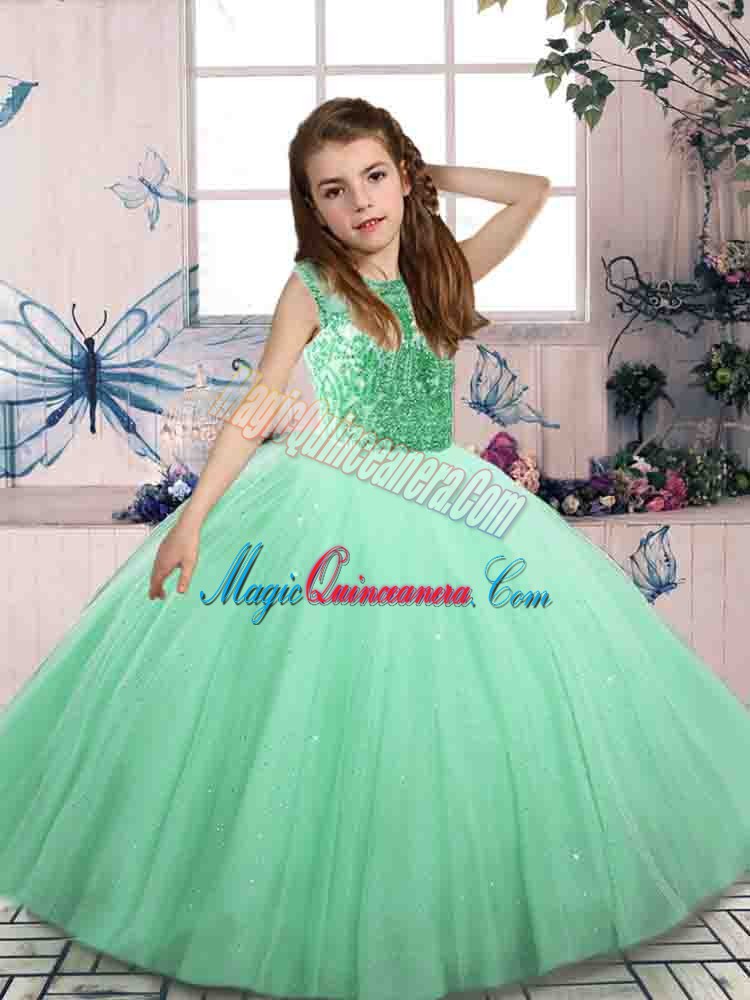 Apple Green Scoop Neckline Beading Little Girls Pageant Gowns Sleeveless Lace Up