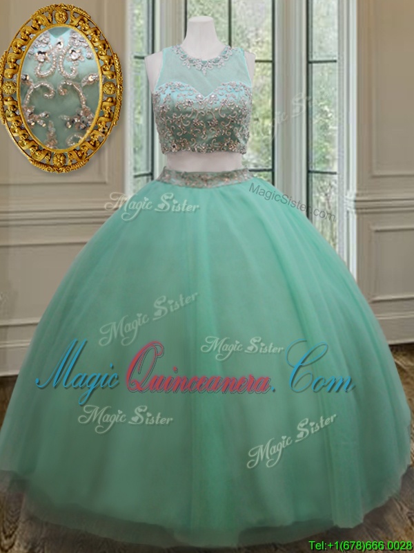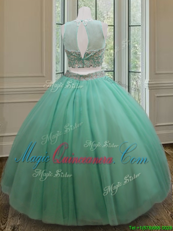 , Apple Green Scoop Neckline Beading Sweet 16 Dresses Sleeveless Zipper