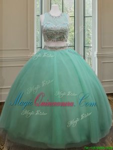 Apple Green Scoop Neckline Beading Sweet 16 Dresses Sleeveless Zipper