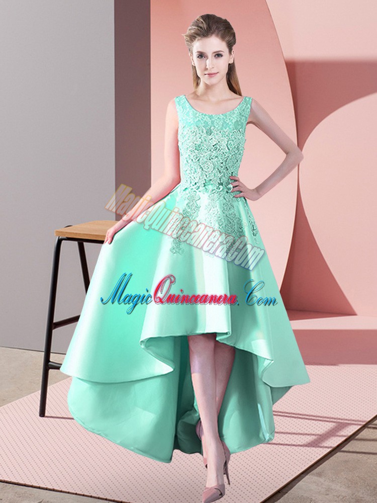 , Apple Green Scoop Zipper Lace Dama Dress for Quinceanera Sleeveless