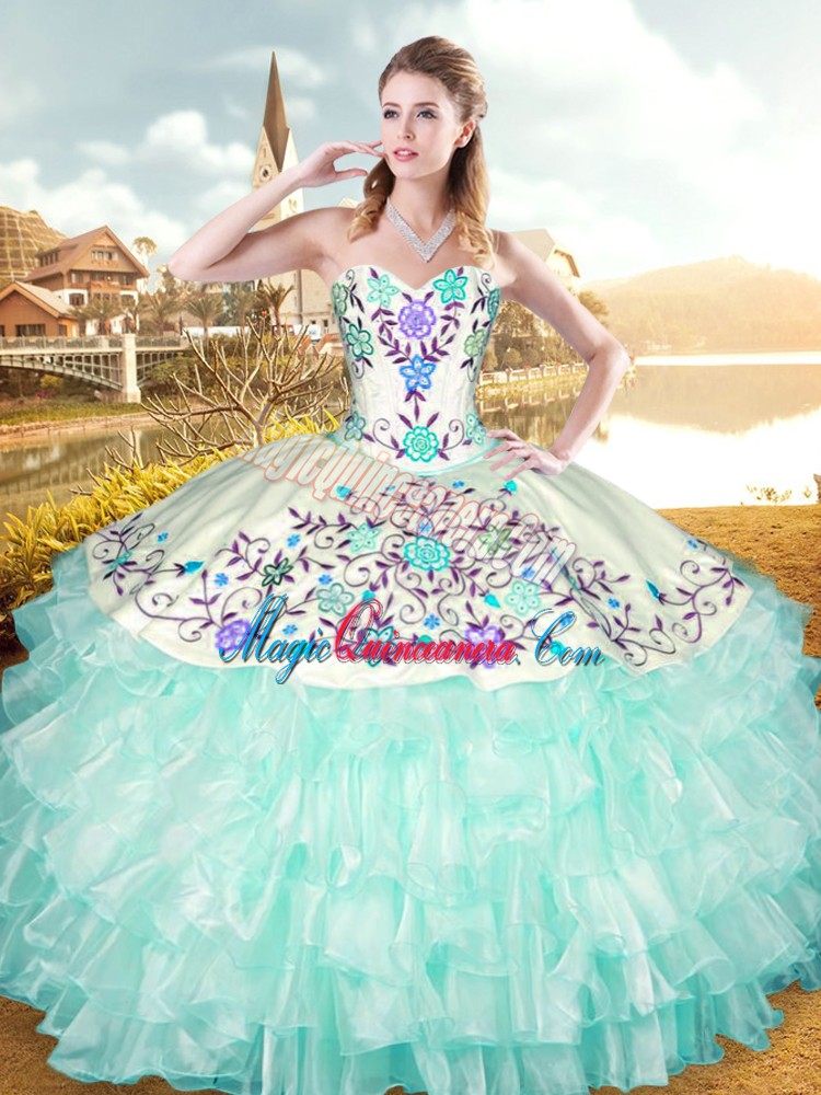 Apple Green Sleeveless Organza and Taffeta Lace Up Quince Ball Gowns for Military Ball and Sweet 16 and Quinceanera