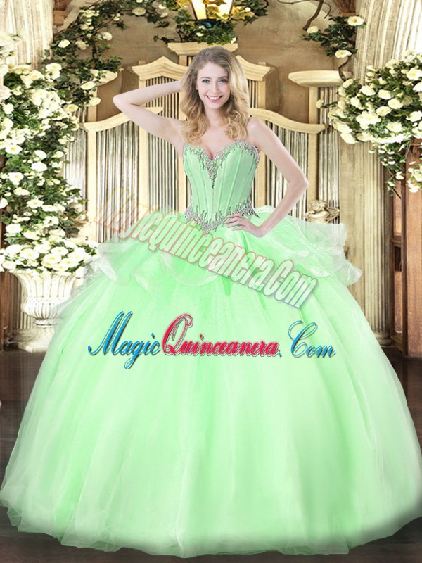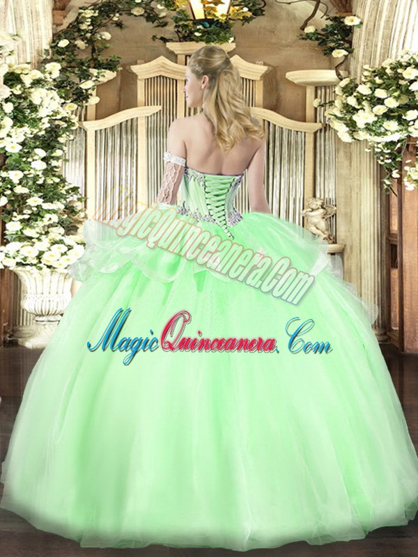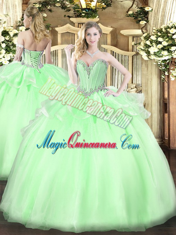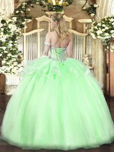 Apple Green Sleeveless Organza Lace Up Quinceanera Gowns for Military Ball and Sweet 16 and Quinceanera
