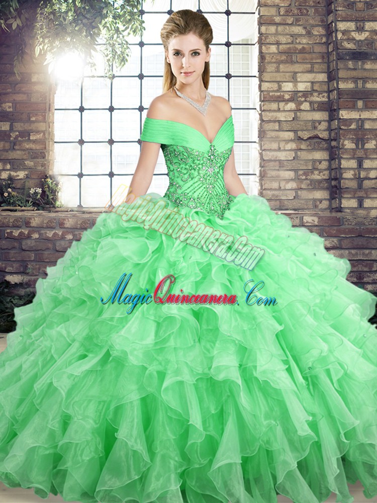 Apple Green Sweet 16 Dress Off The Shoulder Sleeveless Brush Train Lace Up