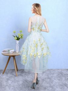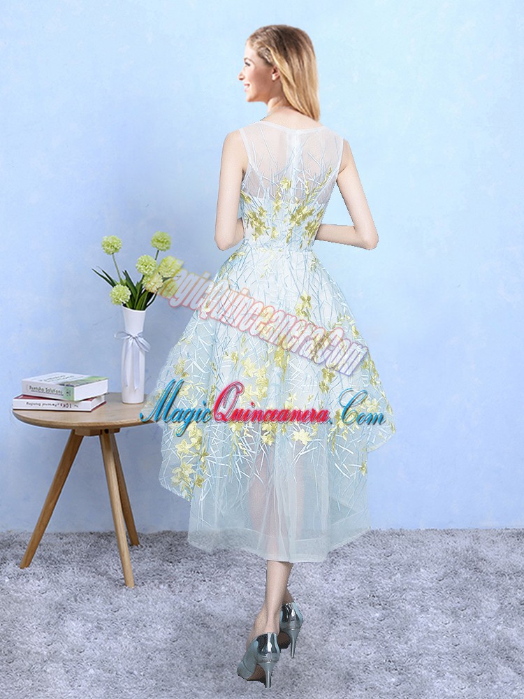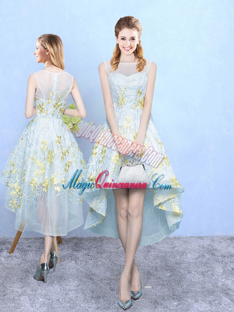 , Apple Green Tulle Zipper Scoop Sleeveless High Low Damas Dress Appliques and Pattern