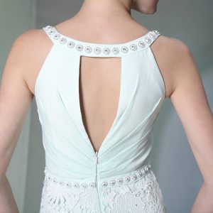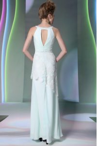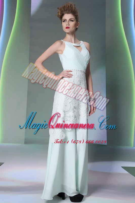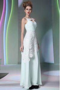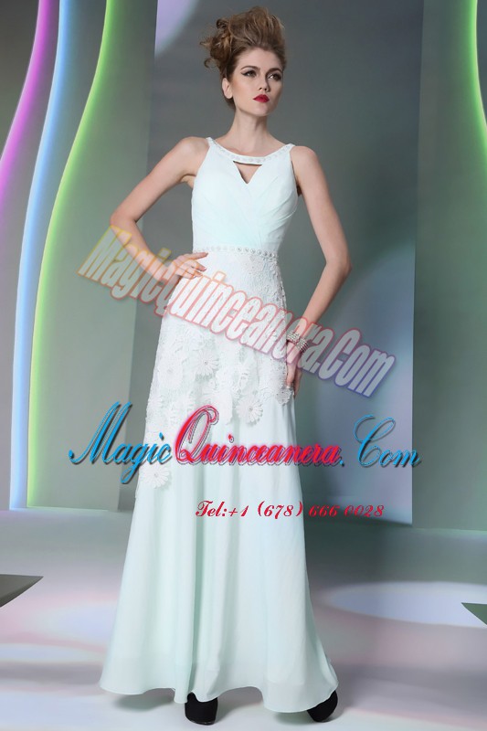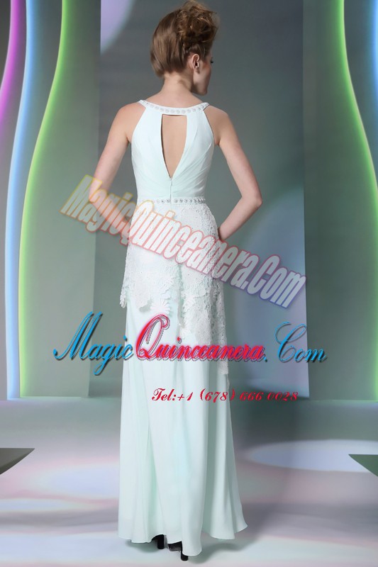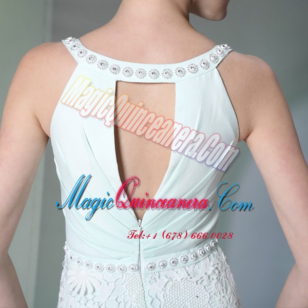 , Apple Green Zipper Scoop Beading and Lace Prom Dress Chiffon Sleeveless