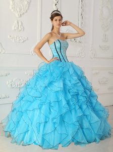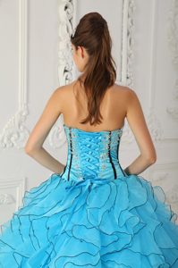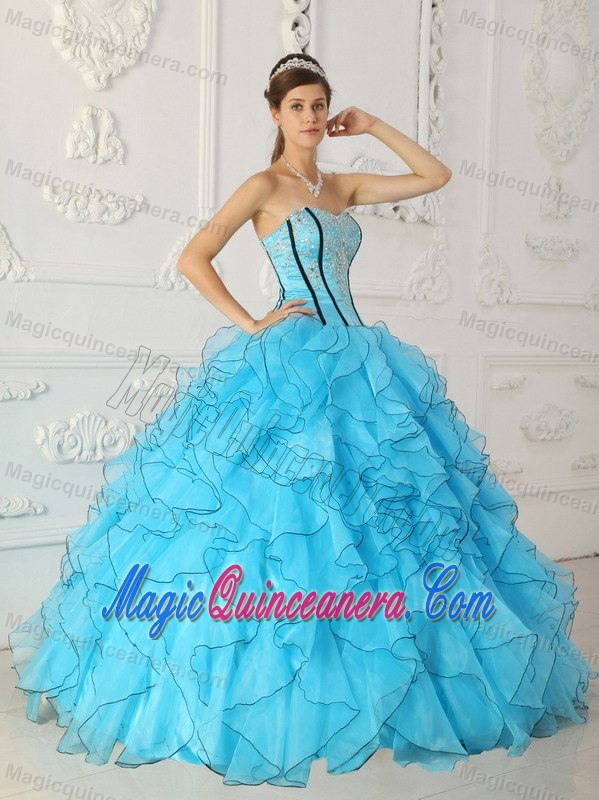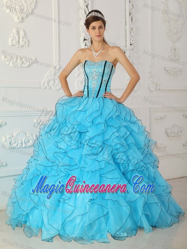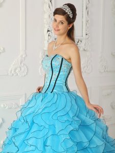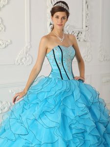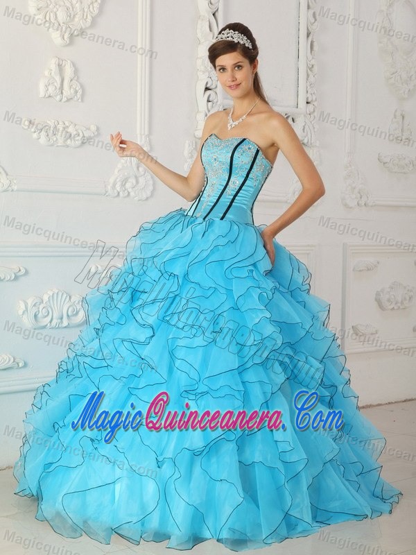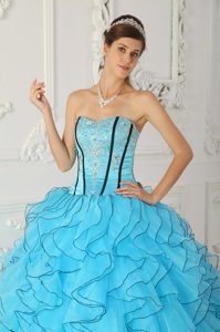 Appliqued and Ruffled Sweet Sixteen Quinceanera Dresses in Blue
