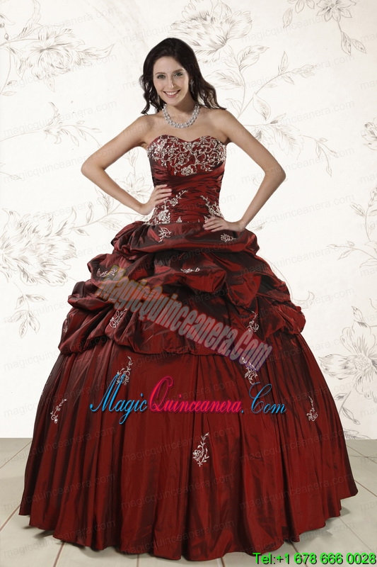Appliques 2015 Wine Red Quinceanera Dresses with Lace UpAppliques 2015 Wine Red Quinceanera Dresses with Lace Up