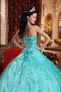 cheap sweet 16 quince dresses with white appliques on sale, Appliques Accent Organza Quinceanera Gown Dresses in Apple Green
