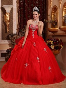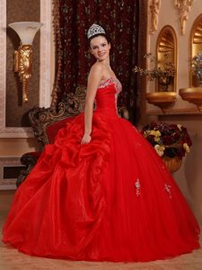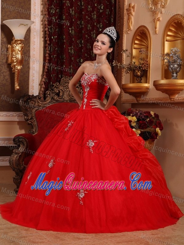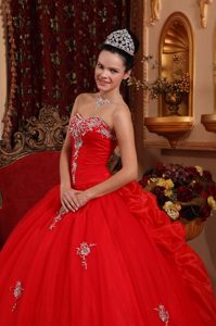 latest red debutante and cotillion dresses for quinceaneras, Appliques and Pick ups Red Quinceanera Gown Dresses Floor Length