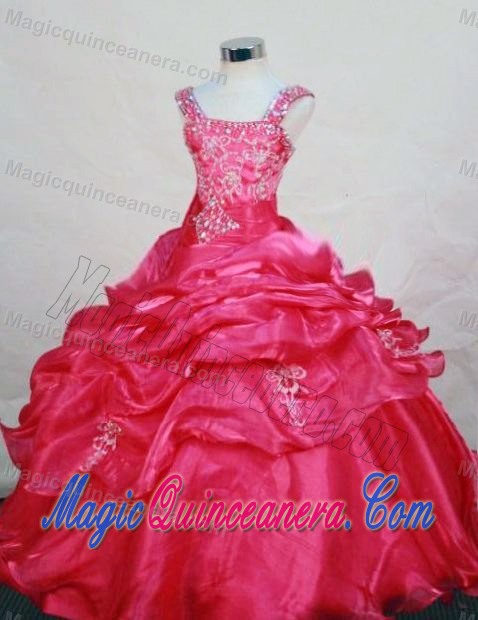 Appliques Beaded Straps Pick-ups Pageant Dress for Girls