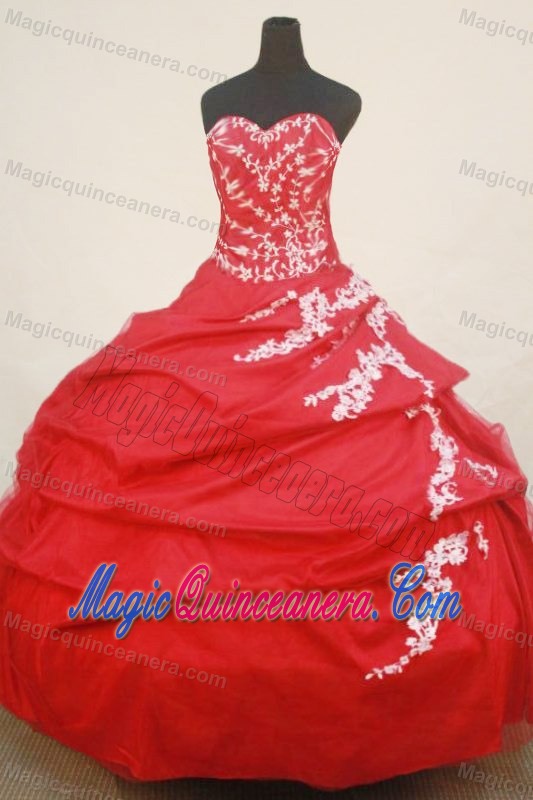 Appliques Sweetheart Floor-length Taffeta Quinceanera Dresses in Red