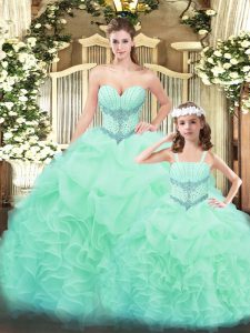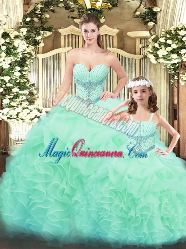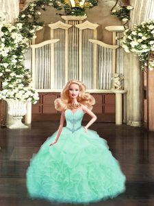Aqua Blue Quince Ball Gowns Military Ball and Sweet 16 and Quinceanera with Beading and Ruffles Sweetheart Sleeveless Lace Up